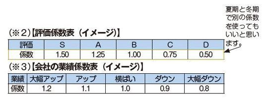 賞与 = 基礎給(※1)× 評価係数(※2)× 会社の業績係数(※3)